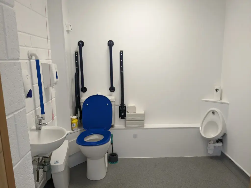 Taps are easy to use and require minimal dexterity. Both toilets are also fitted with low level urinals and have a sanitary bin alongside the toilet pan. Each toilet is fitted with a red emergency pull cord, which reaches the floor and sounds an alarm when activated, and our staff are trained to respond.